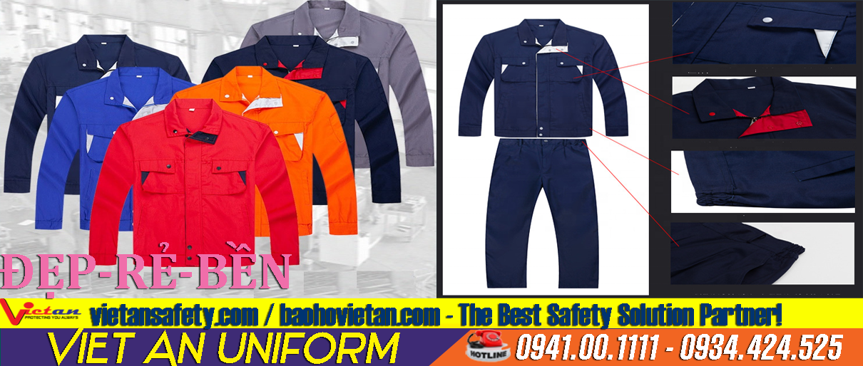 -Xem toàn bộ các danh mục đồng phục bảo hộ: www.dongphuccaocap.org Bất cứ thắc mắc nào, quý khách hàng hãy liên hệ với may đồng phục Việt An theo hotline 24/7 phía bên trái.